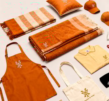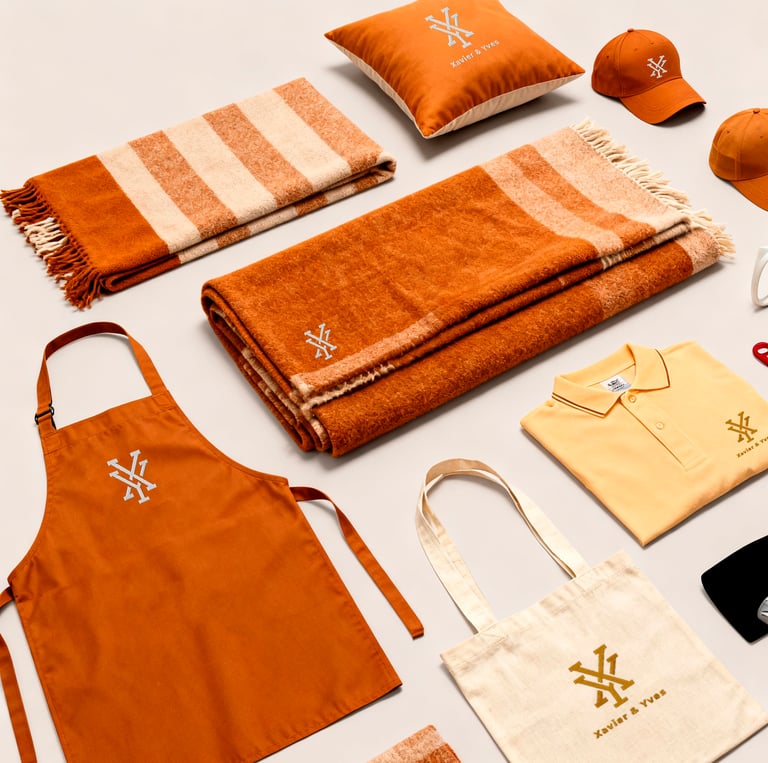 De acessórios em couro genuíno, a tote bags, mantas, aventais ou bonés, cada criação é pensada para refletir a essência única da sua empresa.